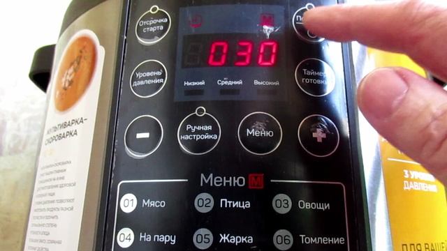 Как, в ходе готовки в мультиварке DEXP, изменить режим автоматической настройки с режима 01 на режим жарки 05. Подробное описание функций девайса. Видео с субтитрами.