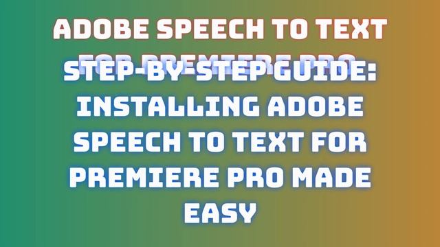 Adobe Speech to Text for Premiere Pro Installation and Download Guide: Simple Tutorial License