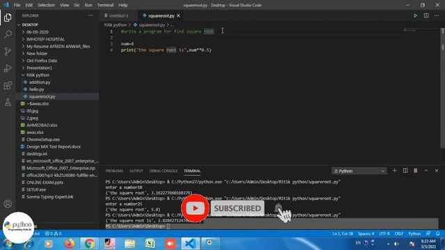 How To Find Square Root With User Input On Python || Visual Studio || Python Programming With RK