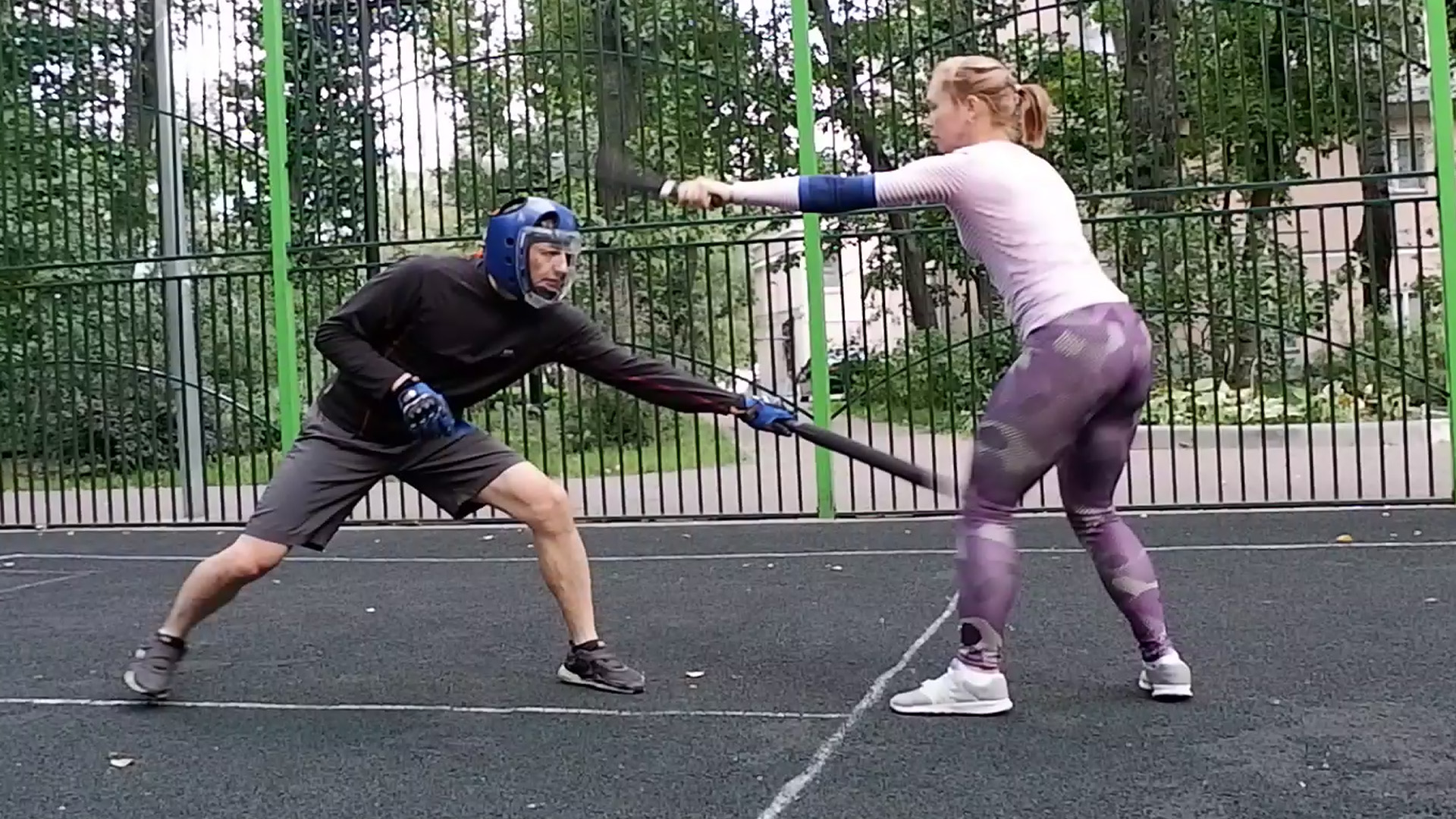 Урок фехтования катаной - школа кендзюцу: отработка с учеником атаки в ногу, рипост в руку/голову