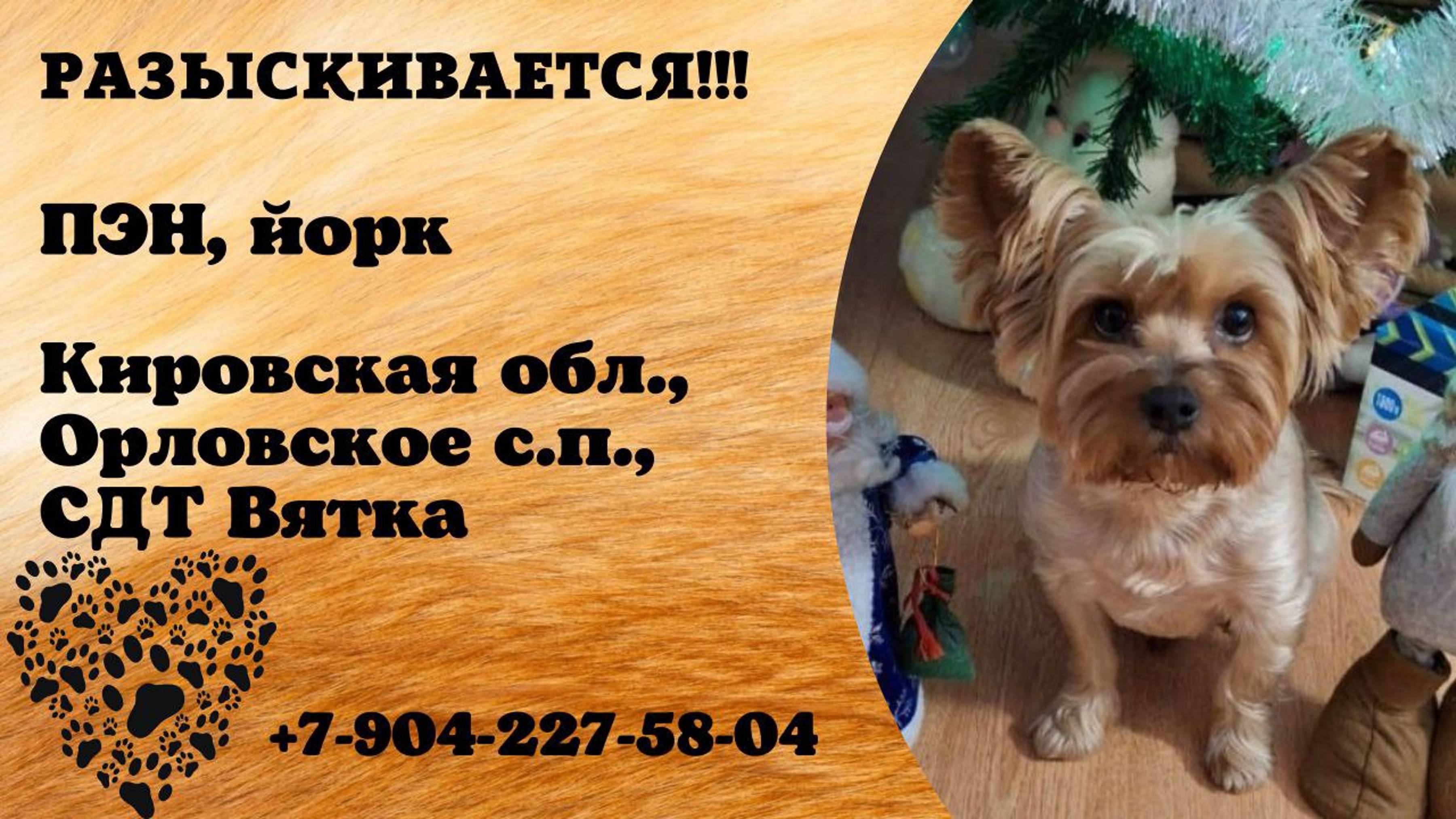 Пропала собака! ПЭН. Йорк. Кировская обл, Орловское с.п, СДТ Вятка