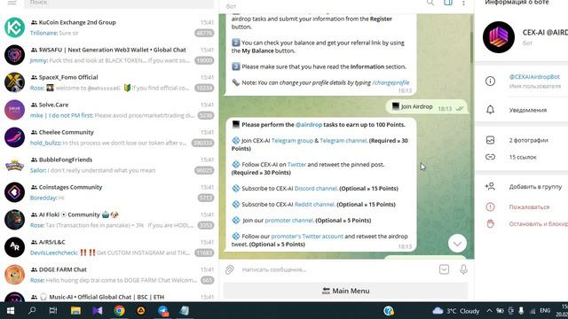 CEX-AI Airdrop ●▬▬▬▬๑спасибо за лайк๑▬▬▬▬▬● ссылка: https://t.me/criptonga/1231 сайт https://www.cexai.io/ -------------------------------------------------------------------------------------- тел. канал: https://t.me/criptonga тел. группа: https://t.me/joinchat/l4qXFj7UJiwwMTIy -------------------------------------------------------------------------------------- Простая раздача токенов в аирдроне от CEX-AI Общий пул аирдропов составляет 2,5 миллиона CEXAI (5% от общего количества). 4000 участников будут выбраны случайным образом и получат по 500 CEXAI каждый. Дата распространения: 05.03.23 г. Token в сети BSC и для получения используем кошельки Trust или Metamask с настроенной сетью BSC. CEX-AI первая криптовалютная биржа с искусственным интеллектом, цель которой — предложить лучшее для наших инвесторов Данное видео несет исключительно ознакомительный характер и не является финансовым советом или призывом к инвестированию. Автор видео не несёт ответственность за возможные убытки, а лишь знакомит с предложениями проекта, высказывает свое субъективное мнение, либо мнение других экспертов. Прошу зрителей и подписчиков учитывать все возможные материальные риски и проводить собственное изучение проектов перед тем как переходить к реальному инвестированию. #cexai #airdrop #bsc
