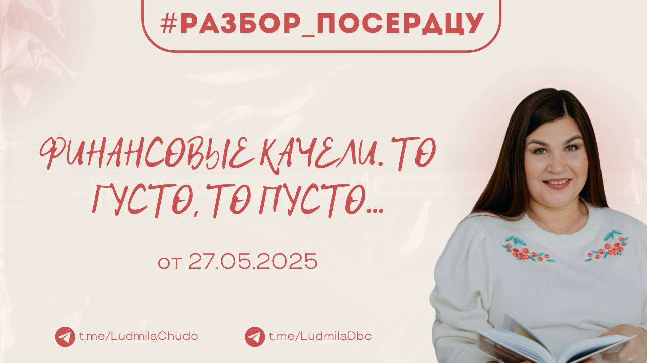 Запись эфира #разбор_поСердцу | Терапевтическая работа ‼️ ВАЖНО: Стартовало обучения работе с метафорическими картами с элементами вселенской терапии Л. Тальписа. Заходите в бот - https://t.me/ludmiladbc_bot и пишите "МАК" ИЛИ смотри мои курсы здесь https://ludmilachudo.skillspace.ru/school 💫записи прошлых разборов здесь 👉🏻 https://rutube.ru/plst/356710 ‼️ до встречи на следующей неделе, успевайте отправить заявку на участие в разборе, заявки на разбор принимаются здесь - https://t.me/ludmiladbc_bot ‼️ канал #твАрец_реальности 2025 Подробнее: https://rutube.ru/video/2744940f7bab3063b818c926b2253dfc/ О канале: https://t.me/chatLudmilaChudo/4310 Заходите в бот - https://t.me/ludmiladbc_bot , если хотите участвовать Теперь в одном месте ты можешь посмотреть: ✔️ чем я могу быть для тебя и... ✔️ что я могу дать тебе Переходи: https://t.me/ludmiladbc_bot ✓ Обязательно поставь 💗 ✓ Подпишись на канал ✓ И поделись с близкими Это будет вашим балансом за движение и получение энергии. Если есть желание создать баланс брать-давать... приму от всего сердца с благословением (донейшн). С Огромной Любовью, Дабахянц Людмила 💓 ✨ Telegram: https://t.me/ludmiladbc ✨ Канал в telegram “Я ЕСТЬ”: https://t.me/LudmilaChudo ✨Мой бот в telegram: https://t.me/ludmiladbc_bot ✨Онлайн-школа: https://ludmilachudo.skillspace.ru/school ✨Rutube: https://rutube.ru/channel/34371568/
