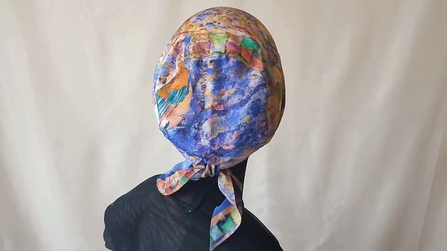 Бандана Шелк 100% на хб подкладе 112166-1 Легкий головной убор 40 гр. фасон Бандана. Сшит из 100% натуральных дышащих тканей: шёлкового крепдешина и тонкого хб подклада из мадаполама. Не скользит за счет подклада, легкий и нежаркий благодаря свойствам использованных натуральных тканей. По крою напоминает детский чепчик, но с откладываемыми назад недлинными довольно широкими лямками. Универсальность размера, практически на любую женскую голову от 54 до 59 размера, достигается за счет свободного кроя. По размеру бандана регулируется на голове завязыванием лямок узлом сзади на шее. Рекомендована ручная стирка в теплой воде. Альтернатива парику, шапка для дома, улицы и сна при выпадении волос. Бандана Шелк 100% на хб подкладе 112166-1