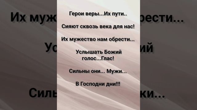 ХРИСТИАНСКИЕ ПЕСНИ ДЛЯ ХВАЛЫ, ПОКЛОНЕНИЯ, ПРОСЛАВЛЕНИЯ, ЕВАНГЕЛИЗАЦИИ, ДУХОВНОГО РОСТА, ПРОБУЖДЕНИЯ, ВОЗРОЖДЕНИЯ #господь#музыка#христианская_музыка#музика#христианскиепесни#бог#христианскиестихи#любовь#христианство#стихи#песня#песни#иисус#иисусхристос#иисусмойбог#иисус_христос#иисусбог#иисусгосподь#хвалы_и_поклонения#хваление#хвала#прославление#духсвятой#духовныйрост#духовноепробуждение#духовность#евангелие#евангелизация#евангельскаявесть#духовный_рост#пробуждение#рождество#рождествохристово#божий#божийнарод#божьеслово #ХристианскаяПесня #ХристианскоеПоклонение #ХристианскаяНоваяПесня #ПастырьМоейДушы #ХристианскаяМузыка #ПесняСлавы #Иисус #ЛюбовьБожья #ХристианскиеТексты #СлаваГосподу #ВераИПоклонение #ВечнаяЛюбовь #RussianChristianSong #RussianChristianWorship #RussianChristianMusic #RussianWorship #NewRussianChristianMusic #RussianChristianMusic #RussianSongOfPraise #Jesus #GodsLove #ChristianLyrics #GloryToGod #RussianFaithAndWorship #EternalLove #Пасха #Воскресение #ХристосВоскрес #пробуждение #возрождение https://stihi.ru/avtor/zhanna70 "ГЕРОИ ВЕРЫ!" СЛОВА, МУЗЫКА, ОБРАБОТКА: ЖАННА ВОЛКОВА-ВАРЛАМОВА Стихи Жанна Юрьевна Волкова-Варламова https://stihi.ru/2025/05/01/1234 1 Куплет Мир сотворён, но грех пришёл... И, воды скрыли всё кругом! Лишь Ной был верен...Он нашёл... Спасенье в ковчеге своëм! Построил большой дом... Под проливным дождём. Припев: Герои веры... Их пути... Сияют сквозь века для нас! Их мужество нам обрести... Услышать Божий голос...Глас! Сильны они... Мужи... В Господни дни!!! 2 Куплет Авраам поверил в обещанье... Оставил дом, пошёл вперёд! И, Моисей принял призванье... Из рабства вывел свой народ! Сквозь пустыню шёл... К земле, что Бог даёт. Припев: Герои веры...Их пути.. Сияют сквозь века для нас! Их мужество нам обрести... Услышать Божий голос...Глас! Сильны они... Мужи... В Господни дни!!! 3 Куплет Давид-пастух сразил врага... Хоть ростом мал, но духом смел! Пророков пламенных слова... Звучали сквозь грядущих дел! Победный гимн... Был спет над злом самим! Бридж Закон был дан, но слаб был он... Не мог от скверны исцелить. Ждал мир Того, кто вознесён... Придёт любовь Свою явить!!! Припев: Герои веры...Их пути... Сияют сквозь века для нас! Их мужество нам обрести... Услышать Божий голос...Глас! Сильны они... Мужи... В Господни дни!!! Заключение: Сквозь множество времён... Идёт к нам Он. (а-а-а) 30.04.2025 Жанна Волкова-Варламова