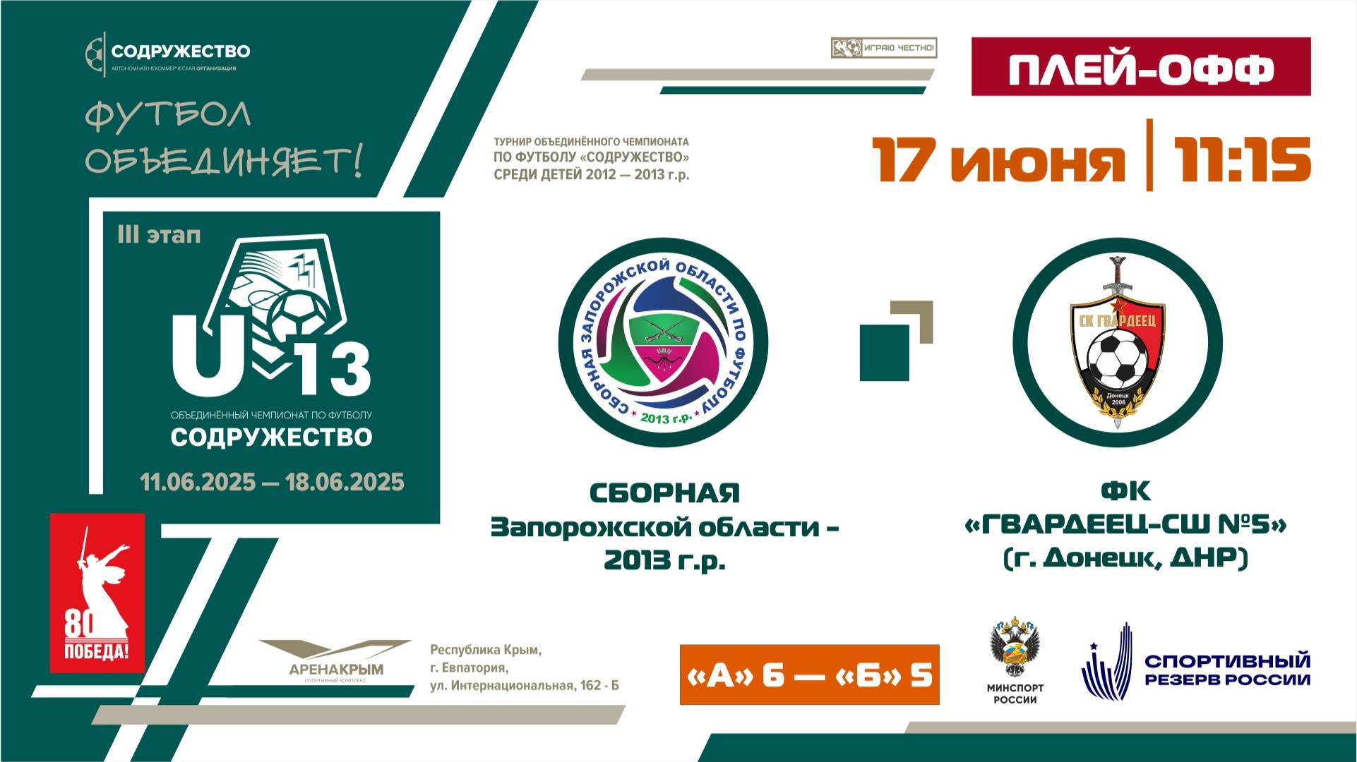 Плей-офф за 9-12 места | Сборная Запорожской области 2013 г.р. А6 – Б5 ФК «Гвардеец-СШ №5» (Донецк)