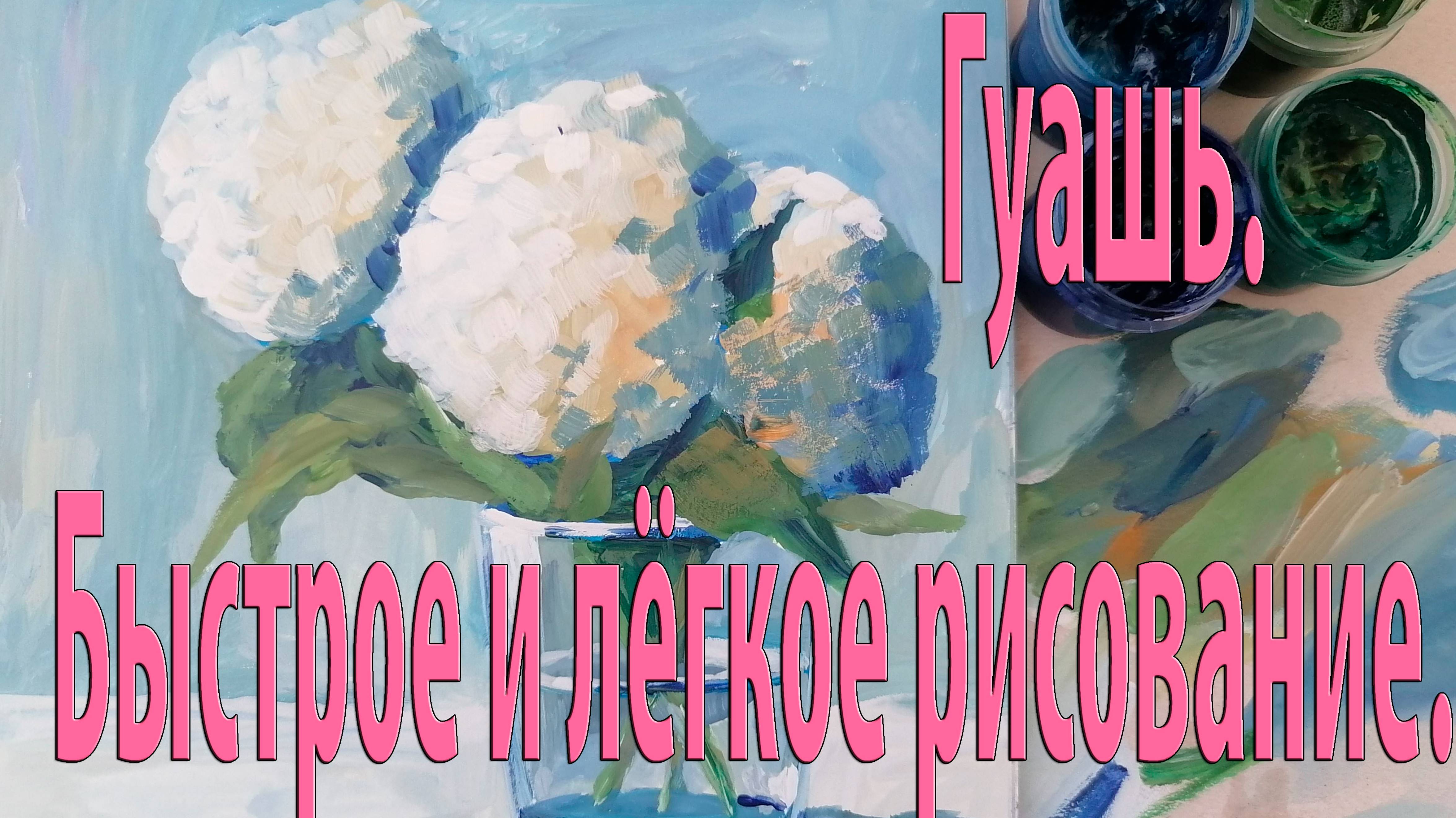 Нарисовать так сможет и ребенок. Белая гортензия гуашевыми красками.