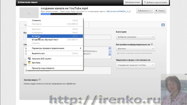 Если Вы хотите узнать как можно зарабатывать на YouTube, то вступайте в группу http://vk.com/youtubetrafic В этом уроке вы узнаете как можно добавлять видео на свой канал YouTube. 0:07 Способы добавления видео на канал 0:30 Загружаем видео на канал 0:41 Добавление описания 0:50 Заполнение тегов 1:20 Проверяем загрузку видео Если у вас возникнут вопросы, то вы можете задать их в группе http://vk.com/youtubetrafic или обращайтесь ко мне. Связаться со мной, вы можете по скайпу korolevamargo07...