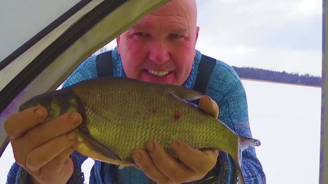 Зимняя рыбалка в палатке .Обедал и лещ пришел отобедать Обед он и в Африке -обед