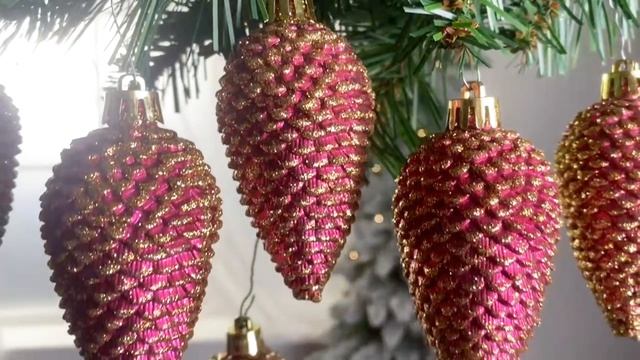 Набор ШИШКИ ЕЛОВЫЕ, бордовый с позолотой, 8 см, 6 шт., 028599
