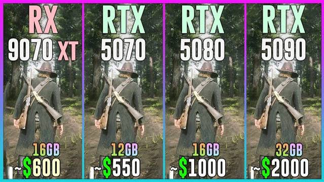 RX 9070 XT vs RTX 5070 vs RTX 5080 vs RTX 5090 - Test in 20 Games 1080p, 1440p, 2160p, 4k, 2k, dlss 4, dlss 3.7, fsr 4, fsr 3.1, ray tracing, frame generation, native, Multi Frame Generation ⏩GPUs & Amazon US⏪ (Affiliate links) 💥RX 9070 XT 16GB: https://amzn.to/4bxyEKX 💥RTX 5070 12GB: https://amzn.to/41sJCN 💥RTX 5080 16GB: https://amzn.to/4jyqKER 💥RTX 5090 32GB: https://amzn.to/40zy7mz ⏩PC Setup⏪ - OS: Windows 11 Professional 64-bit - CPU: Ryzen 7 9800X3D - MB: GIGABYTE X870 AORUS Elite - RAM: Corsair Vengeance RGB 32GB DDR5 - 6400 Mhz CL32 💁♂️ When you buy from my Amazon links, I earn a small commission at no extra cost to you, plus you support the channel thank you.