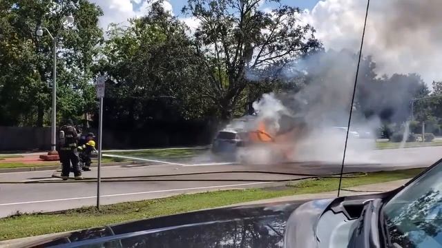 Explosión del tanque de combustible de Toyota Rav 4 durante la extinción del incendio por parte de los bomberos. Aparentemente ambos se encuentra bien.