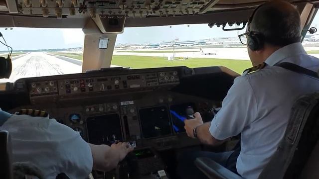Красивый вид взлет большого грузового авиалайнера. Управление Самолетом вид из кабины пилота