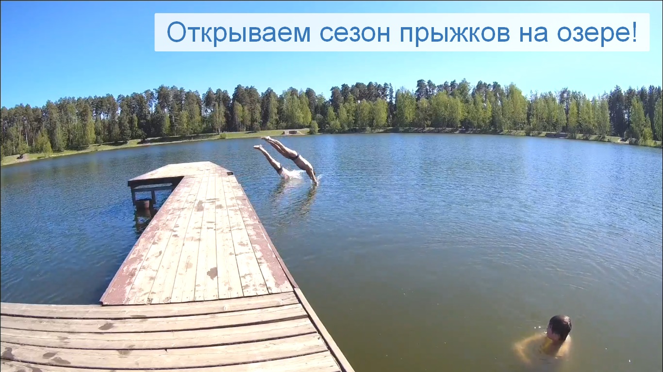 Открываем сезон прыжков 2024 года на Южном озере в Черноголовке. При температуре воздуха +21 градус, температуре воды +16,8 градуса.