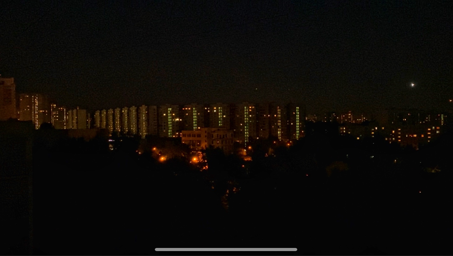 Огни в окнах соседних домов. Ночная улица и огни пролетающих самолетов!