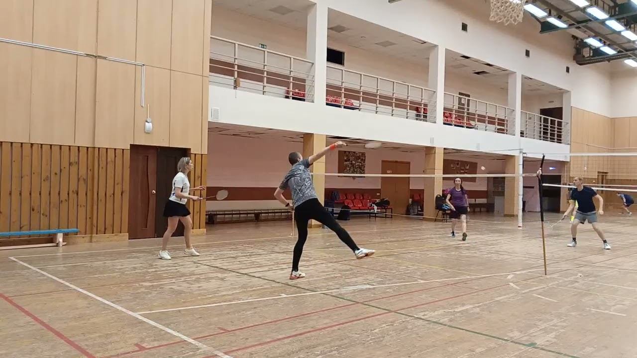 Тренировочная игра в бадминтон через сетку. Играют любители, новички и опытные бадминтонисты. Игра в Лестехе (МГУЛ ранее, сейчас называется филиалом Бауманки). Хочешь тоже играть? Приходи - https://badminton77.ru/map/4/ #badminton #badmintonlovers #badmintonrussia #lesteh #ЛесТех #бадминтон