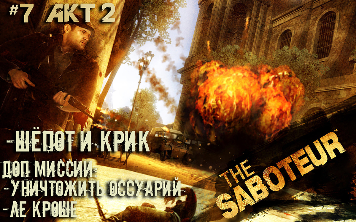 The Saboteur - компьютерная игра в жанре action-adventure с элементами шутера и автосимулятора. 2 акт Миссии: - Шепот и крик; Дополнительные миссии: - Уничтожить оссуарий; - Ле Кроше; #Saboteur #Саботаж #action #шутер