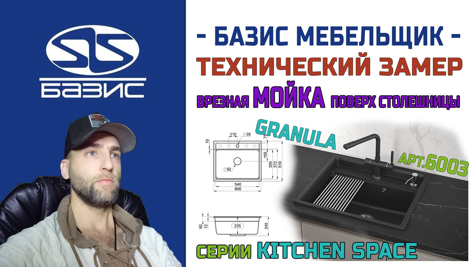 Технический замер МОЙКИ Granula серии Kitchen space арт.6003