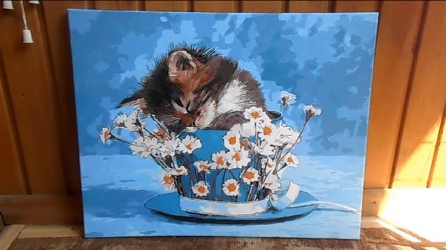 Котенок в ромашках (рисование по номерам): Paintboy арт. GX9251. Готовая работа.