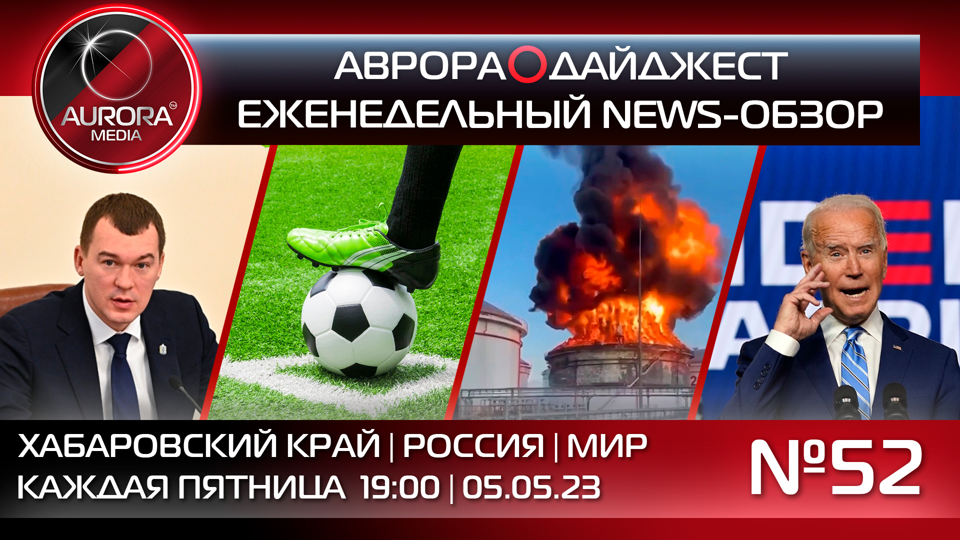 52-й еженедельный новостной видео-разбор АВРОРА⭕ДАЙДЖЕСТ, сделанный Редакцией в формате: Хабаровский край | Россия | Мир, с ключевыми региональными, российскими и международными событиями: ⭕ НОВОСТИ ХАБАРОВСКОГО КРАЯ: Михаил Дегтярев рассказал о мерах поддержки экономики региона. Тренер национальных сборных по футболу присоединился к хабаровской академии «Искра». Край получит деньги на реконструкцию аэродрома в Охотске. На развитие севера региона направят более 2 млрд рублей. Хабаровский край представят в Москве на выставке «Россия». 60 млн рублей выделят на благоустройство общественных пространств города. В этом году планируют начать оперировать детей с тяжёлыми формами эпилепсии. Спортивные учреждения Хабаровского края стали одними из лучших в стране. ⭕ НОВОСТИ РОССИИ: Владимир Путин подписал закон о пожизненном лишении свободы за госизмену. В Брянской области из-за взрыва сошел с рельсов грузовой поезд. В Севастополе два беспилотника атаковали нефтебазу. В Ленинградской области подорвали опору ЛЭП. С Камчатки выдворили гражданина Германии, на которого составили протокол о пропаганде ЛГБТ. ⭕ НОВОСТИ МИР: Байден встретился с семьей арестованного журналиста Гершковича. Джанет Йеллен сообщила, что США грозит дефолт. Экс-премьер Словакии Роберт Фицо заявил, что заблокирует поставки оружия Украине. Финляндия и США обсуждают соглашение, которое позволит американским военным использовать финские базы. IBM приостановит найм сотрудников, которых может заменить искусственный интеллект.