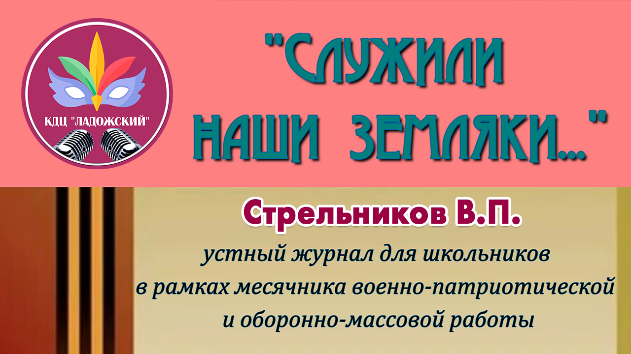 Добрый день, дорогие друзья! Представляем Вашему вниманию цикл публикаций в рамках устного журнала для школьников «СЛУЖИЛИ НАШИ ЗЕМЛЯКИ» Стрельников В.П. #КультураОнлайн #КультураОнлайнДетям #КДЦЛадожский #БудьКруче #ЖивиЯрко #Удалёнушка2022