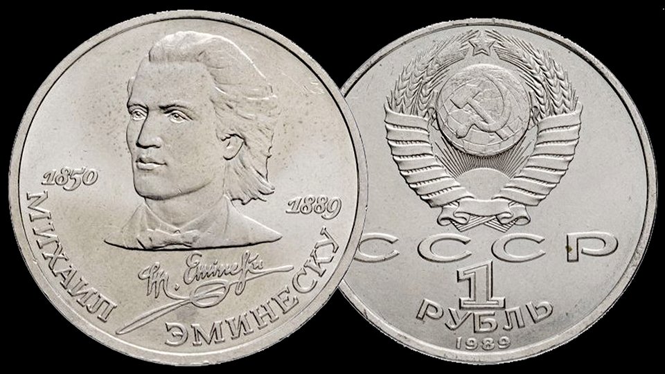 Монета 1 рубль СССР 100 лет со дня смерти Эминеску.