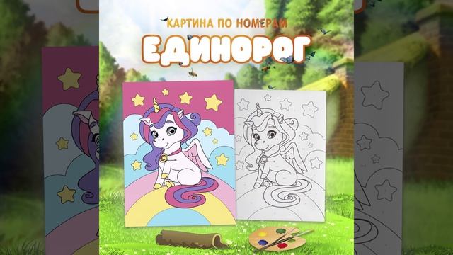 Картина по номерам для детей на холсте с подрамником 21х15 Единорог на радуге