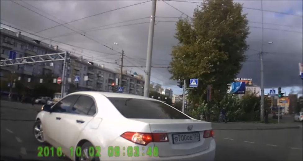 Водитель Хонды подрезает и учит пожилого человека