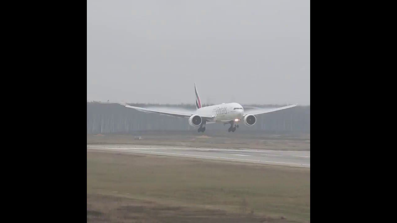 Необычная посадка Boeing 777 авиакомпании Emirates в Домодедово