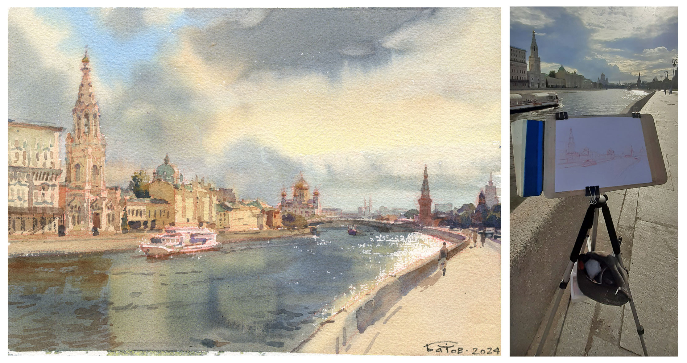 20240808 Кремлёвская набережная. Натурный этюд, акварель