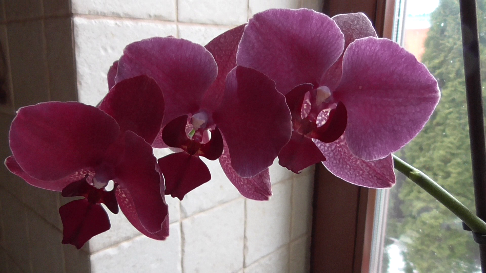 Комнатное растение орхидея цветёт на подоконнике