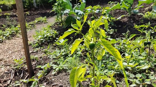 Грядка с перцами частично опустела, так как часть рассады усохла. Появились всходы редьки, репы, нута. Подсолнухи всходят не охотно. Капуста растет хорошо, но некоторая падает набок от своей массы и от того, что земля от дождей стала нестабильная. Очень много тли на молодых побегах вишни. Снял с огурцов защиту в виде 5-ти литровых бутылок с обрезанным дном. Острые перцы дают плоды торчком вверх. Медленно, но верно наливаются плоды томатов. Растения выпускают много пасынков. Пропололи и рассадили свеклу и морковь, но морковь растет плохо и даже, подсеянная ранее только-только всходит. Начала созревать ирга и малина. Неплохо растет тыква. Зрителям приятного просмотра. Не судите строго за возможные огрехи. Всем добра!