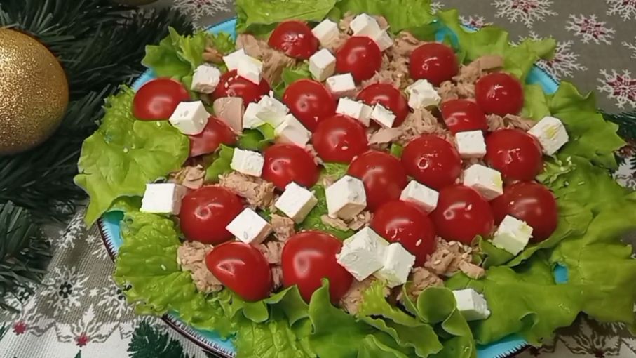 Салат с тунцом, брынзой и помидорами