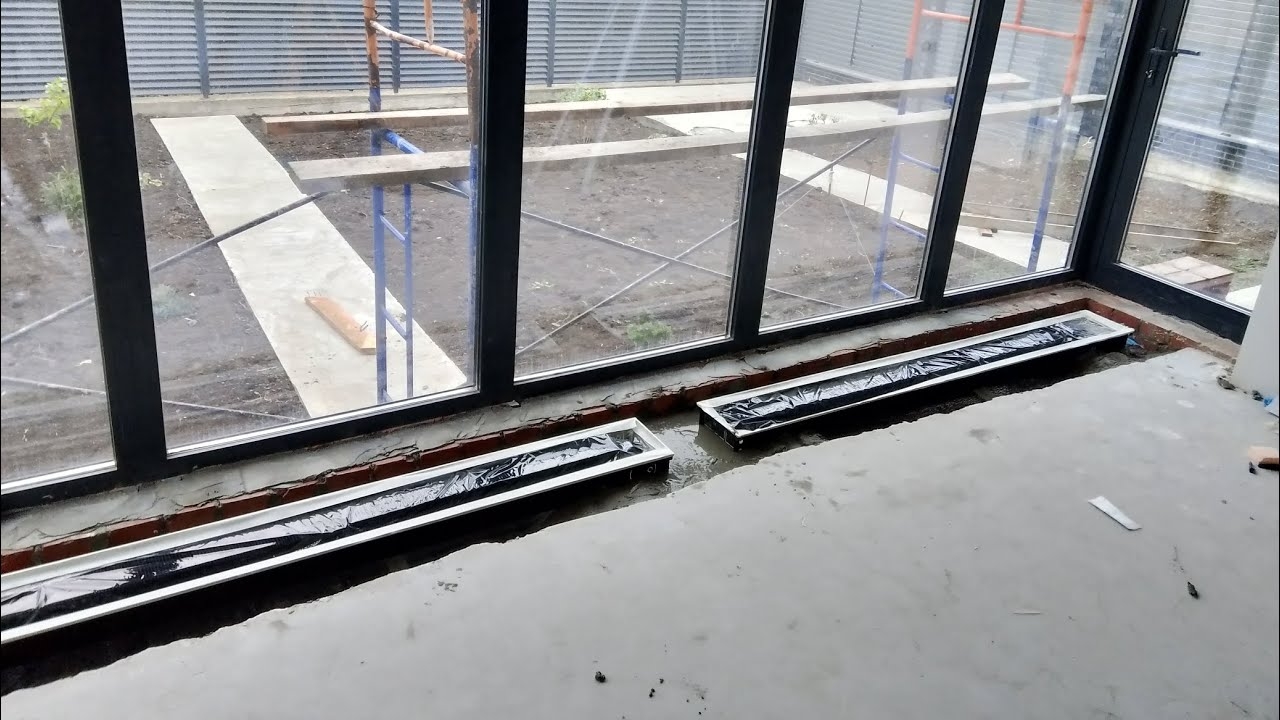 Внутрипольный конвектор.Стяжка бетонным раствором.