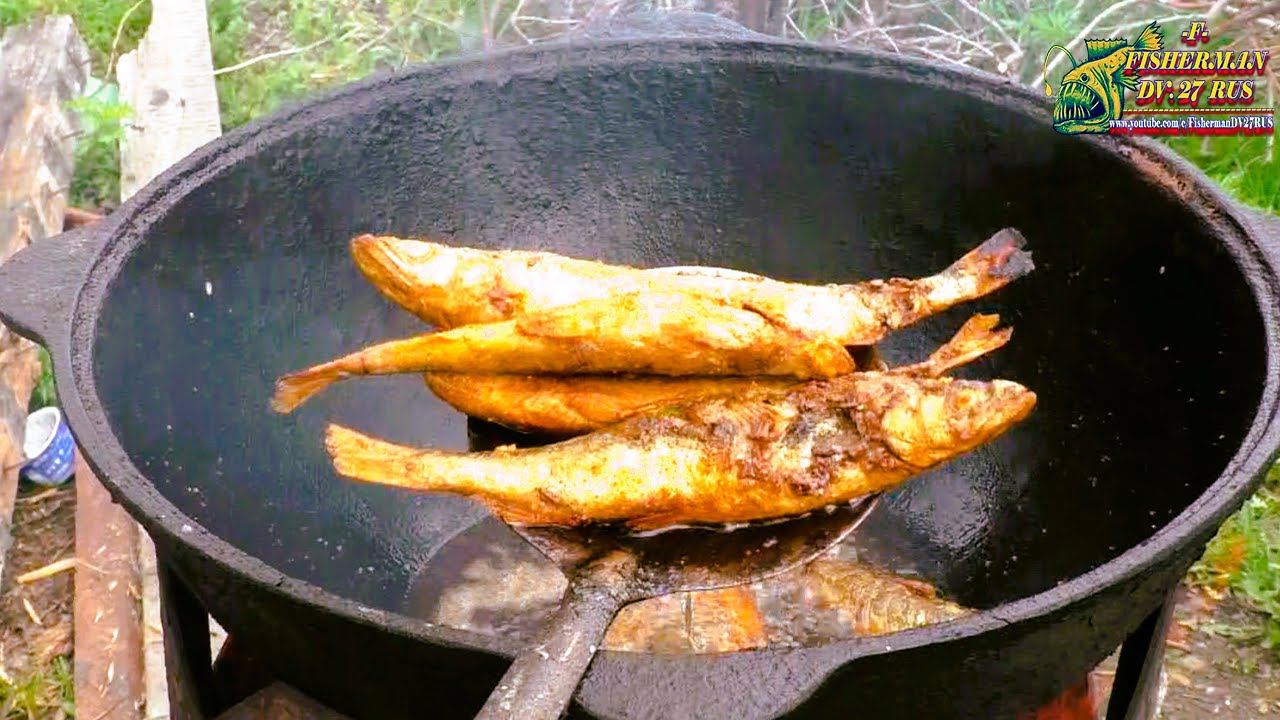 Жареная корюшка в мокрой панировке в казане и шарабан из толстолобика. рецепты от fisherman dv.27rus