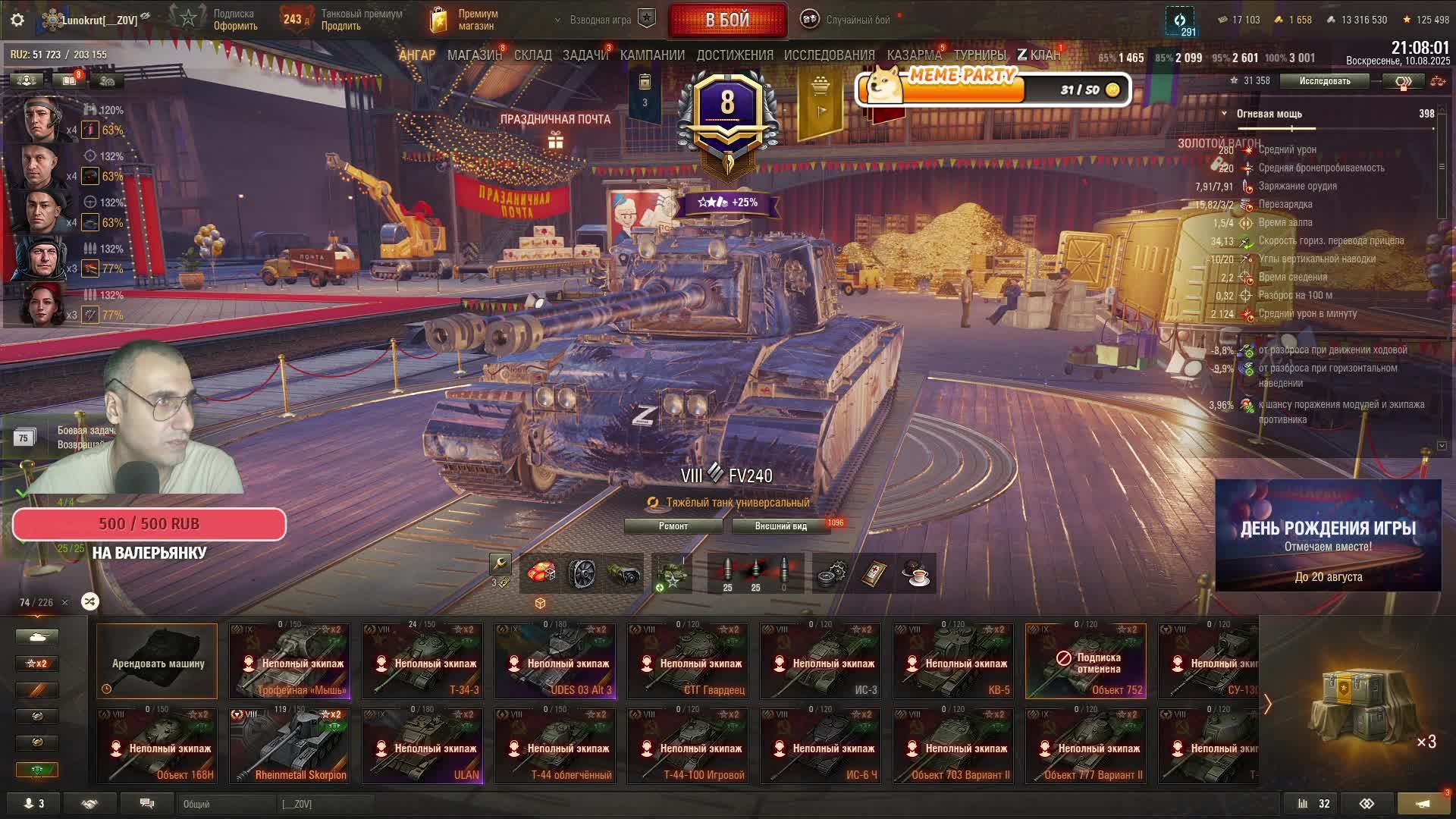 ✅ Поддержать Стримера | Донат ► http://www.donationalerts.ru/r/thelunokrut ✅ Мем на стрим ►https://memealerts.com/677f699658e7bc6e54e31c64 ✅ Мой Boosty | Донат ► https://boosty.to/thelunokrut ✅ Vk Play Live ► https://vkplay.live/thelunokrut ✅Ссылка на Rutube - https://rutube.ru/channel/40024084/ ✅ Заказ музыки 100 рублей если есть надпись на экране | Донат► http://www.donationalerts.ru/r/thelunokrut ✅ Поддержать Стримера | Донат ►https://new.donatepay.ru/@1006700 ✅ Продолжение стрима +1 час = 2000 рублей ► Пишите в сообщении доната что на продолжение стрима. ✅ Поддержать напрямую | Сберкарта ► 4817 7603 5142 0603 ✅ Подписаться на канал ► https://www.youtube.com/channel/UCRWAOl93SsGV1ZMLqmRfTPA ✅ Принимаю челенджи ►награда на ваше усмотрение. ✅ Заказать танк или корабль ► 1 --- 100 рублей. Арта, Кремль и Авик цена договорная. ✅ Игра во взоде в танках ► 1 катка 100 рублей. ✅ Игра в отряде корабли ► 1 катка 100 рублей. ✅Телеграмм канал для связи с общественностью:)- https://t.me/+VaNUttLRK5Y0Zjgy World of Tanks («Мир танков») — массовая многопользовательская онлайн-игра, полностью посвященная бронированным машинам середины XX века. Игроки получат возможность плечом к плечу сражаться с поклонниками стальных гигантов со всех уголков планеты, отстаивая свои претензии на мировое танковое господство.