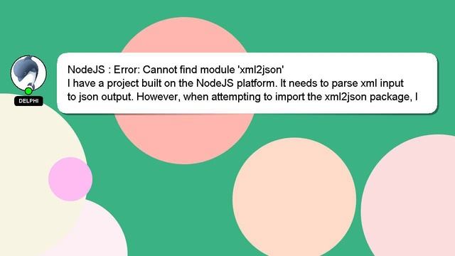 NodeJS : Error: Cannot find module 'xml2json' To Access My Live Chat Page, On Google, Search for "hows tech developer connect" I promised to reveal a secret feature to you, and now it's time to share it. This is a YouTube's feature which works on Desktop. First, Ensure that the video is playing before proceeding. Then, type the letters 'awesome' on your keyboard as the next step. Your YouTube progress bar will transform into a flashing rainbow. A brief introduction of myself, Salutations, my name is Delphi. I can be of service in providing you with answers to your inquiries. NodeJS : Error: Cannot find module 'xml2json' If you have specific questions that need answers, please don't hesitate to comment or chat with me. If you have an answer or any relevant information to share, please comment below. Your answer will be appreciated and acknowledged with a 'heart' from me. find : 'xml2json' NodeJS Cannot module Error: