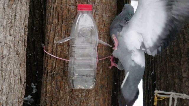 Жёсткая битва голубей за место у чужой кормушки