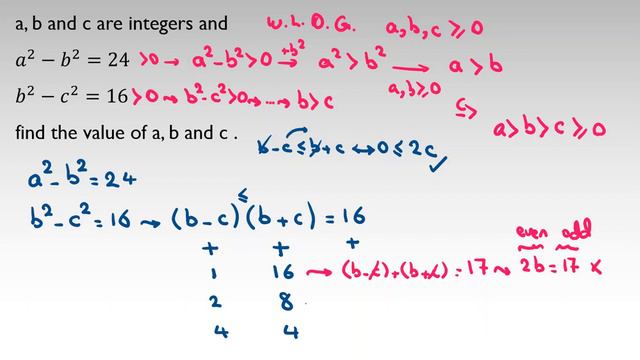 Whatsapp number: 00989224137653 a^2 - b^2 = 24 b^2 - c^2 = 16