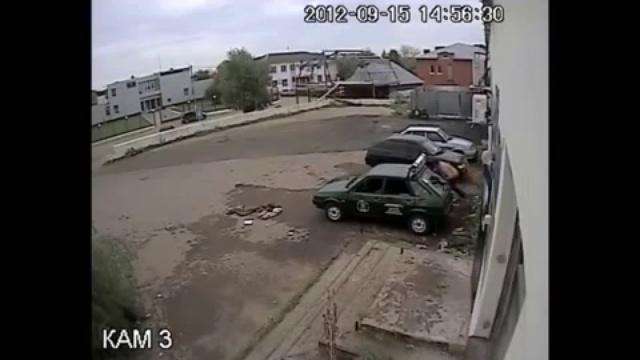 Пьяный мужчина голыми руками пытается разбивать машину
