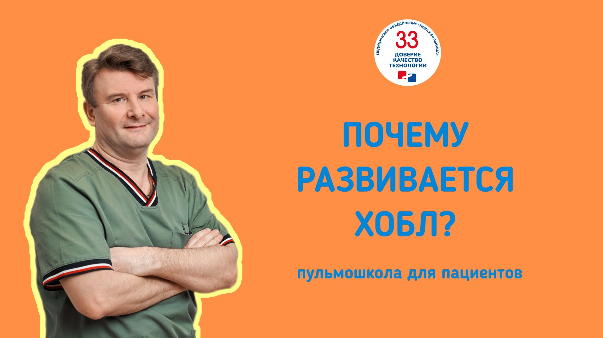 ХОБЛ: разбираем непростую тему с пульмонологами «Новой больницы» Готова запись первого занятия в пульмошколе по ХОБЛ с врачом-пульмонологом «Новой больницы», к.м.н. Алексеем Викторовичем Кривоноговым. Кратко о главном: ХОБЛ – это хроническое заболевание дыхательной системы, при котором происходит постепенное сужение дыхательных путей и нарушение прохождения воздуха по легким ХОБЛ развивается годами и приводит к постепенному уменьшению функции легких ХОБЛ входит в тройку ведущих причин смертности во всем мире Курение – ведущий фактор риска. 80-90% случаев развития заболевания связаны с табакокурением. Риск развития ХОБЛ у курильщиков в 3-5 раз выше Бросить курить – самое важное, что может сделать пациент для предотвращения прогрессирования болезни Среди основных симптомов ХОБЛ – одышка при физической нагрузке (первый и главный симптом), кашель с мокротой (из-за воспаления бронхов выделяется слизистая или слизисто-гнойная мокрота), свистящее дыхание, снижение толерантности к нагрузкам Спирометрия – «золотой стандарт »в диагностике ХОБЛ. Важно знать, что показатели спирометрии могут различаться в стадии обострения и ремиссии. Пациентам с подозрением на ХОБЛ исследование рекомендуют проводить в период ремиссии. Напоминаем, что записаться на консультацию к пульмонологу и другим специалистам «Новой больницы» можно по телефону +7 (343) 355-56-57 или на сайте newhospital.ru