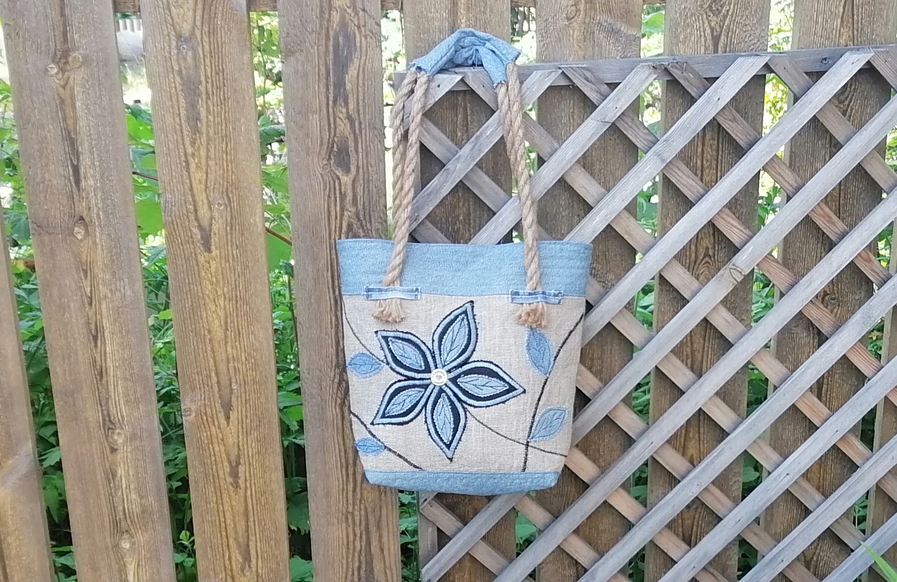 В этом видео я покажу как можно сочетать джинсовый материал с мешковиной.