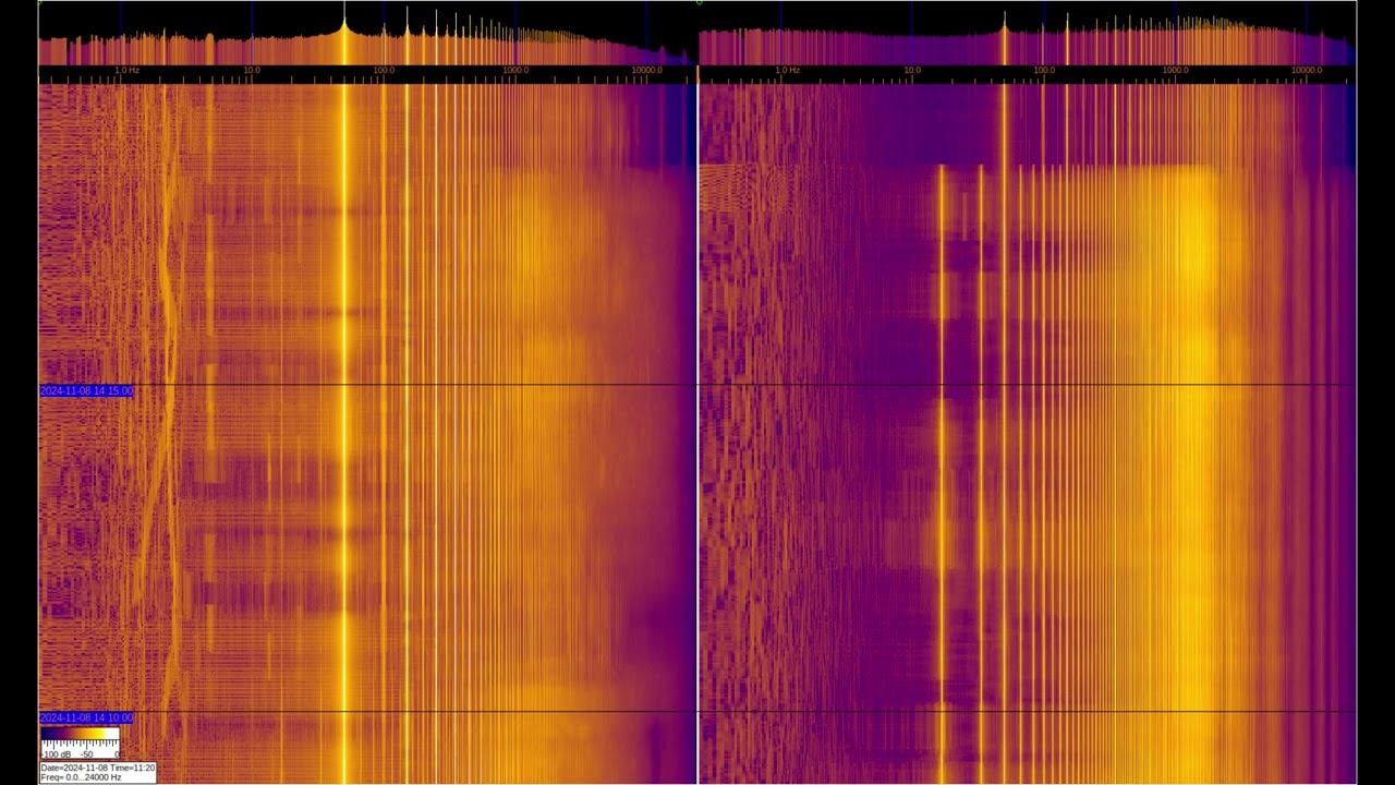 The left and right signals are taken from inductive sensors with ferromagnetic elements, but the left one is additionally connected to grounding on 2 stainless steel pins buried 1 m and spaced 1 m apart. You can see a large number of harmonics from the power supply and various artificial signals. Of interest are signals at frequencies below 50 Hz, where you can observe the operation of specialized equipment and communication signals of submarines and underground objects. Separately, it is worth considering signals in the region of 1-3 Hz on the left spectrum, which relate to the geomagnetic background, which is modulated by solar activity, They can be viewed in more detail in the video called “Signals from the Earth,” which are in the playlists below. The sound in the video is recorded in real time - a signal from sensors. О ПРОИСХОЖДЕНИИ ЧАСТОТНОЙ МОДУЛЯЦИИ СЕРПЕНТИННОЙ ЭМИССИИ https://youtu.be/bwWHggY1IVU?si=xAX1diRKI9MxQJ88&t=1740 Previous monitoring is in playlists: EMF monitor https://youtube.com/playlist?list=PLiRg2YCbXcwn41BHqADKVBep_TgVq6XUN Очень Низкая Частота ~ Very Low Frequency https://youtube.com/playlist?list=PLiRg2YCbXcwnp5DxM4PnSs7k_Rnypaqek SIGNALS IN THE GROUND https://youtube.com/playlist?list=PLiRg2YCbXcwl6f3Bf5arHbGSOCNE5U71O поддержать канал: 8-999-654-93-44