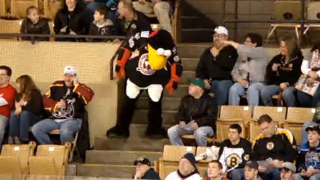 tux entertains fans before the 09 ahl allstar game in worcester Ma
