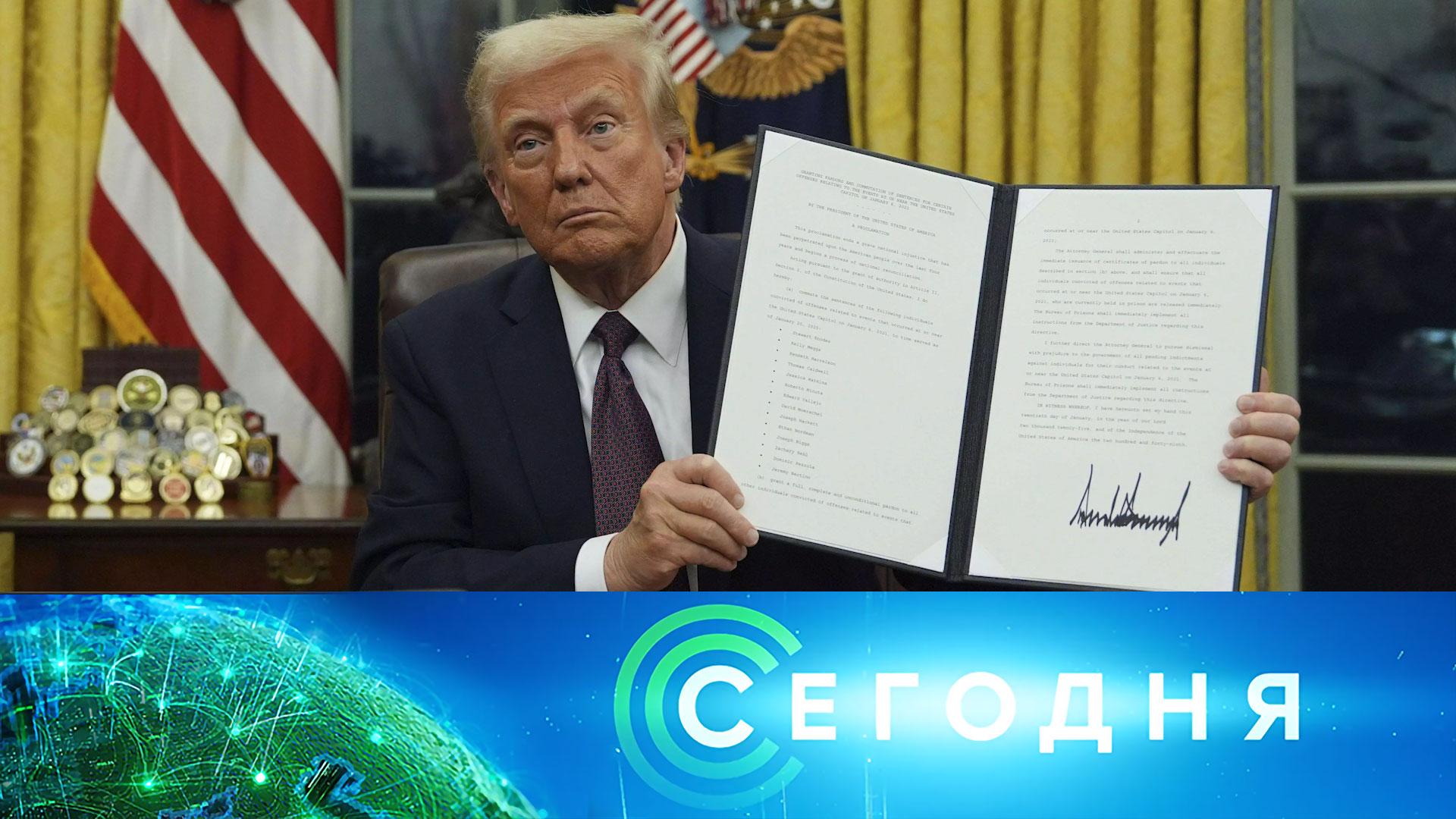 00:00 В этом выпуске 00:36 Наводят мосты и строят укрепления: свой профессиональный праздник отмечают бойцы инженерных войск. 03:34 Владимир Путин в Ново-Огарёве по видеосвязи провел переговоры с Си Цзиньпином. 05:23 Новый старый президент: какие указы подписал Трамп сразу после вступления в должность? 10:15 Президент Франции объявил о проекте по мобилизации большого числа молодых добровольцев для усиления вооруженных сил страны на случай опасности. 11:38 Министр иностранных дел России на встрече с главой внешнеполитического ведомства Армении заявил, что прошлый год был непростым в отношениях между двумя странами, но российская сторона заинтересована в нормализации и укреплении связей. 13:20 Трагедия на горнолыжном курорте в Турции: ночью в одной из гостиниц вспыхнул пожар. 13:58 В «Ростелекоме» подтвердили утечку личных данных пользователей. 18:13 Михаил Мишустин вручил премии правительства в области культуры за 2024 год. 19:28 В Белоруссии началось досрочное голосование на выборах президента страны. 20:07 На Курском направлении в приграничном районе работают российские «Аллигаторы». 20:29 Волонтеры доставили гуманитарную помощь в приграничные районы Курской области. Там, где уже стало безопасно находиться, эксперты оценивают причиненный ущерб. 24:00 В Москве объявят победителей конкурса Фонда президентских грантов. Государство поможет реализовать лучшие идеи участников конкурса. Смотрите все выпуски программы «Сегодня» на RUTUBE: https://rutube.ru/plst/53542/