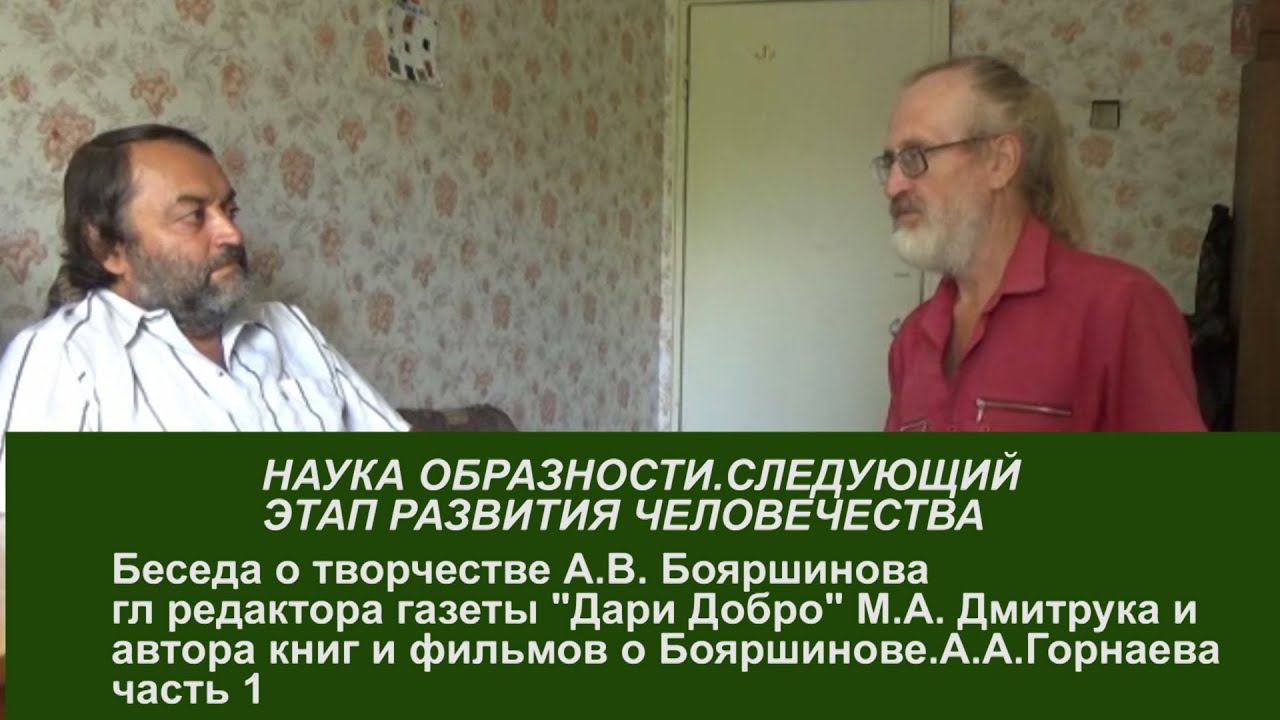 "НАУКА ОБРАЗНОСТИ. ПРОДОЛЖЕНИЕ УЧЕНИЯ К.С.СТАНИСЛАВСКОГО И СОВРЕМЕННОСТЬ. СЛЕДУЮЩИЙ ЭТАП РАЗВИТИЯ ЧЕЛОВЕЧЕСТВА УПРАВЛЕНИЕ ЧЕРЕЗ ОБРАЗЫ" Беседа о творчестве А.В.Бояршинова Михаил Алексеевич ДМИТРУК, журналист, главный редактор газеты "ДАРИ ДОБРО" Алексей Андревич Горнаев, автор фильмов и книг о Бояршинове Акцент ТВ ПРП Ковчег, 2016 г часть 2 Поддержать канал карта Сбербанка - 2202 2005 9631 3880 Мы в соцсетях: ВКонтакте - https://vk.com/akcentv Канал "Акцент ТВ" ВКонтакте - https://vk.com/club36535968 Алексей Васильевич Бояршинов ВКонтакте - https://vk.com/prp_kovcheg Поселение Родовых поместий Ковчег