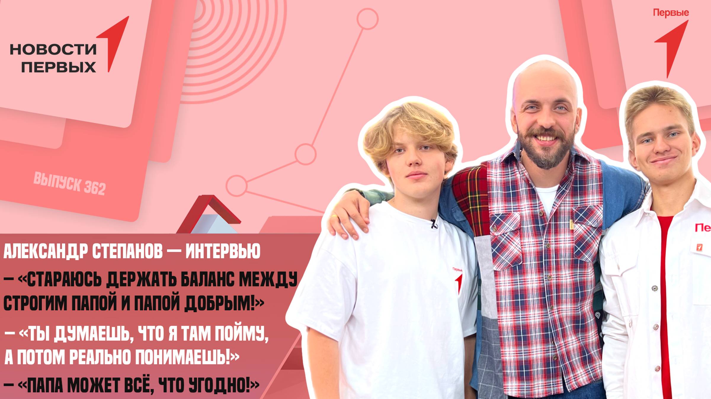 Сегодня: • пообщаемся с Александром Степановым. Поэт, певец, телеведущий расскажет об отцовском воспитании, семейных ценностях, ответственности, карьере и новых проектах; • ребята из Движения Первых поблагодарят своих отцов за поддержку; • с грядущим праздником пап Первых поздравят Родион Газманов, Анита Цой, Стас Михайлов и другие знаменитости. А ещё мы пригласим тебя на Всероссийский фестиваль «Наука 0+» — будем вместе изучать ДНК, тестировать технологии виртуальной реальности и узнавать о перспективах российского научного сообщества.