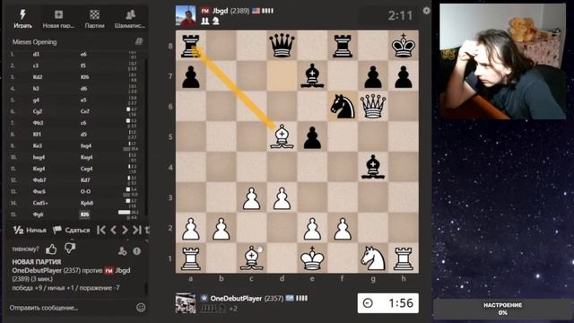 Друзья, всем привет. Партия со стрима, представляю вашему вниманию. Шахматы. Блиц 3+0 на chess.com. Если интересно, - подписывайтесь на канал, ставьте лайки, оставляйте комментарии. Поддержка через: DonationAlerts: https://www.donationalerts.com/r/onedebutplayer Бусти: https://boosty.to/onedebutplayer/donate Donatepay: https://new.donatepay.ru/@1272445 Плейлист "Дебют Эльшада против титулованных шахматистов." Youtube: https://youtube.com/playlist?list=PLjTlNmwodudeLbFWUJSc_zIlReTsRqZ8K Плейлист "Дебют Эльшада против титулованных шахматистов." RuTube: https://rutube.ru/plst/1164791