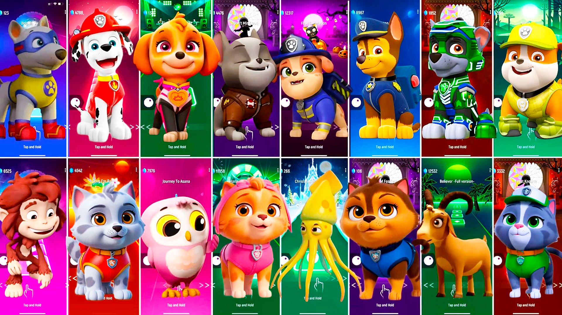 Мультики для Детей Щенячий Патруль Tiles Hop - МАРШАЛЛ, СКАЙ, МОТОР, ГОНЩИК, РОККИ, КРЕПЫШ