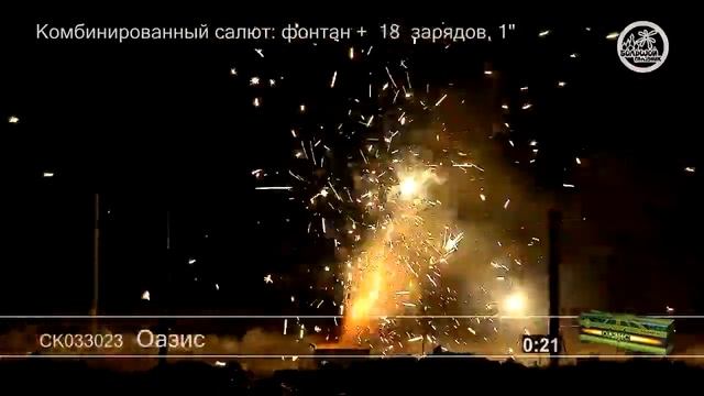 СК033023 Оазис Батарея салютов с фонтаном 18 залпов высотой до 25 м, калибром 1 дюйм
